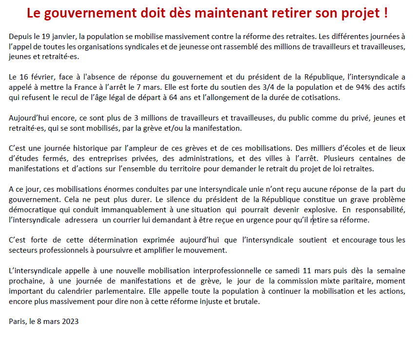 LES CHIFFRES DE LA GREVE DU 7 MARS 2023